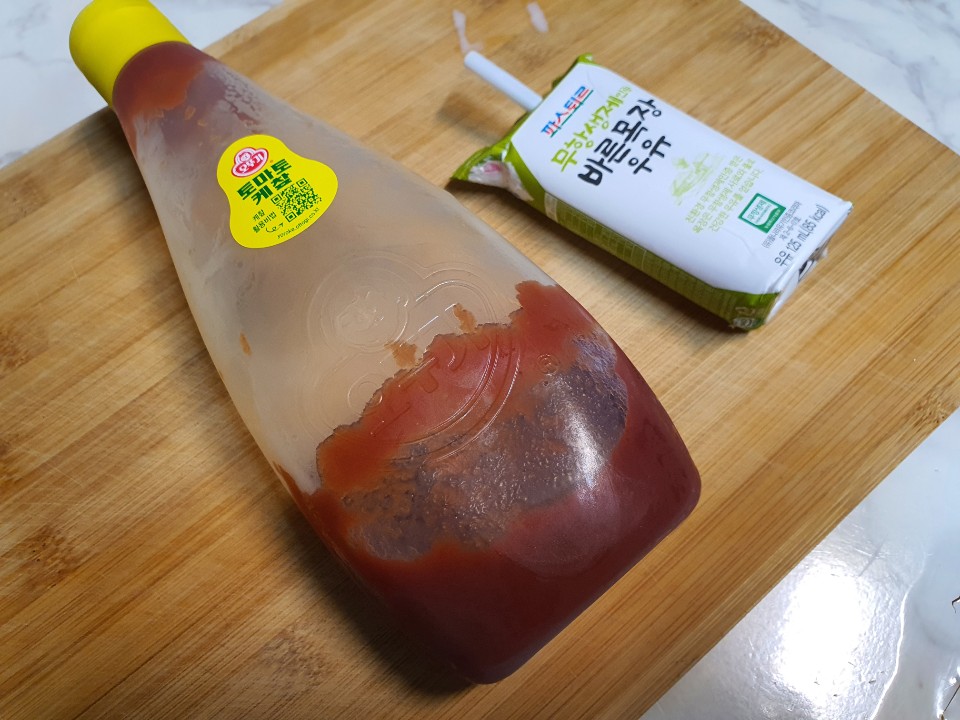 토마토케첩 그리고 우유를 준비했습니다.