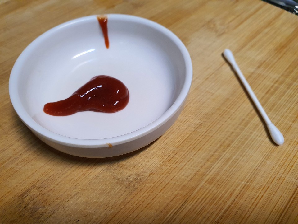 그릇에 토마토케첩을 조금 짜주고